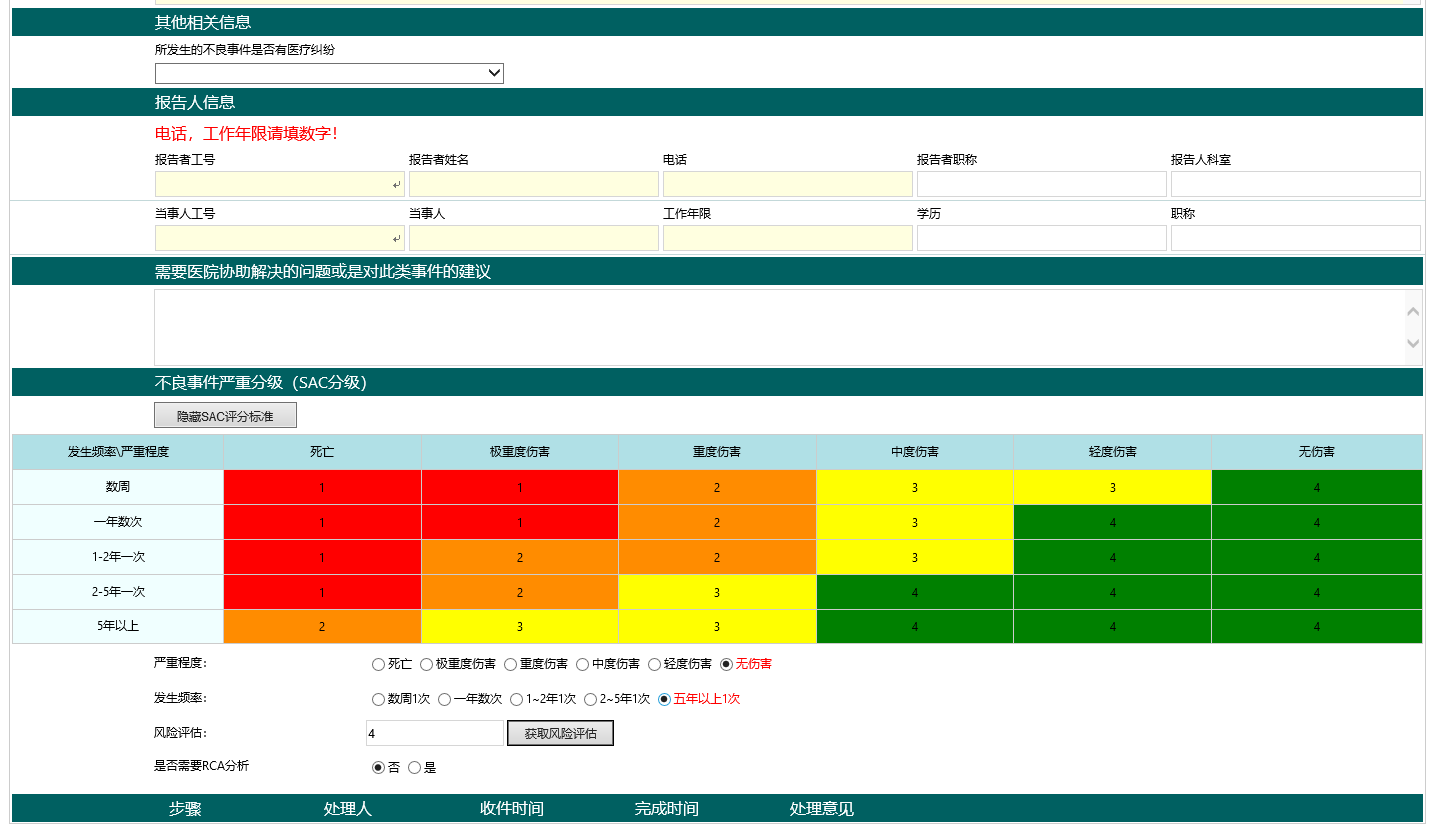 通过5个层级的严重度与发生频率2个维度进行数据的统计汇总,针对严重度高的事件,作为RCA分析的重点事件,为医院的质控分析提供清晰的指导和汇总